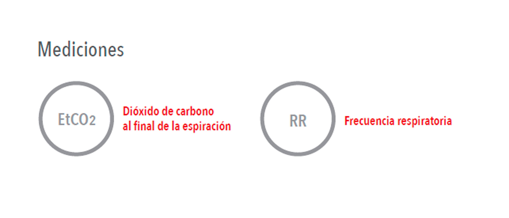 Resultados inmediatos: gracias a su tiempo mínimo de calentamiento, las mediciones de dióxido de carbono al final de la espiración (EtCO2) y de frecuencia respiratoria (RR) se muestran en 15 segundos